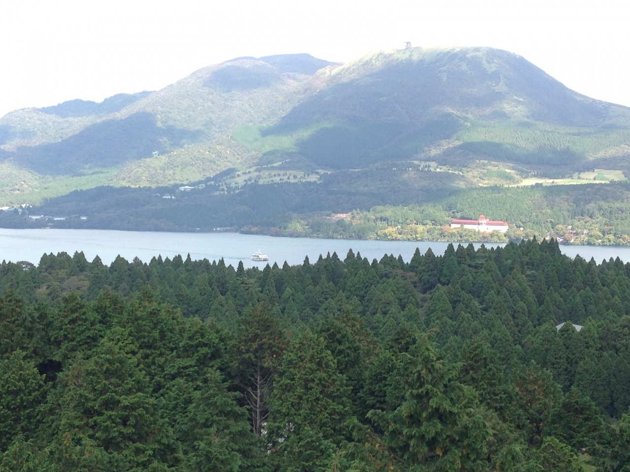芦ノ湖、ちょうどいいところにnice boat.